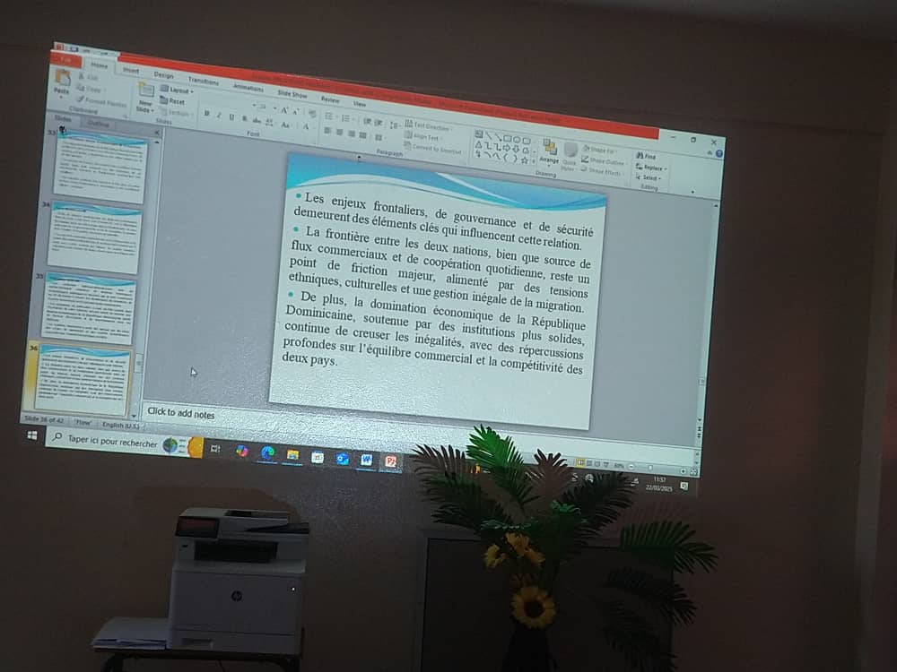 Les 22 et 23 mars ont été consacrés à deux journées thématiques réunissant universitaires et spécialistes. Le professeur Kénel Senatus, intervenant sur la question des relations bilatérales, appelle à une diplomatie active et professionnalisée. Selon lui, « il est encore possible que les deux peuples puissent s’entendre, peu importe qu’il y ait des tensions ». Il déplore cependant l’absence de volonté politique en Haïti pour faire avancer la Commission mixte binationale, et critique le laxisme diplomatique face à des logiques dominicaines souvent marquées par des replis nationalistes.